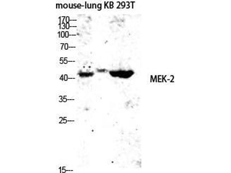 MEK-2 Polyclonal Antibody detects endogenous levels of MEK-2 protein.