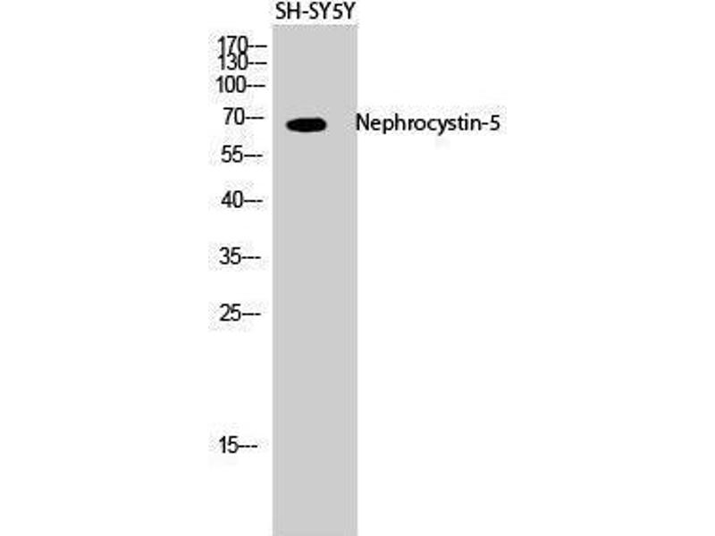 - Nephrocystin-5 Polyclonal Antibody detects endogenous levels of Nephrocystin-5 protein.