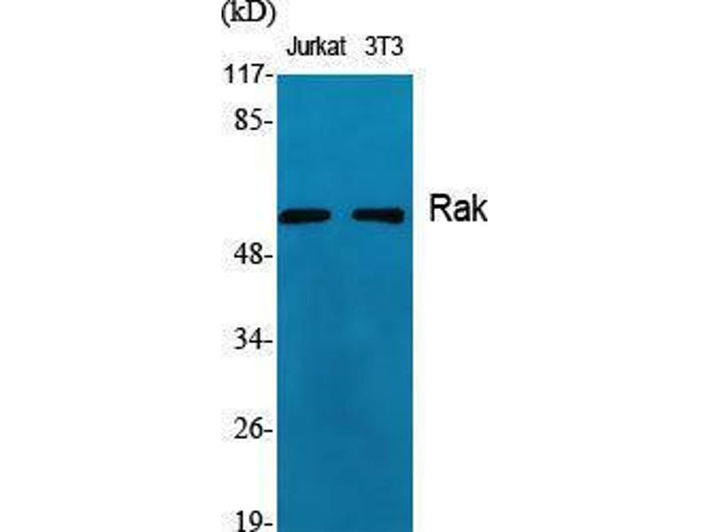 Rak Polyclonal Antibody detects endogenous levels of Rak protein.