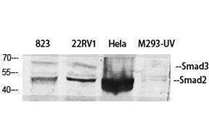 Smad2/3 Polyclonal Antibody detects endogenous levels of Smad2/3 protein.