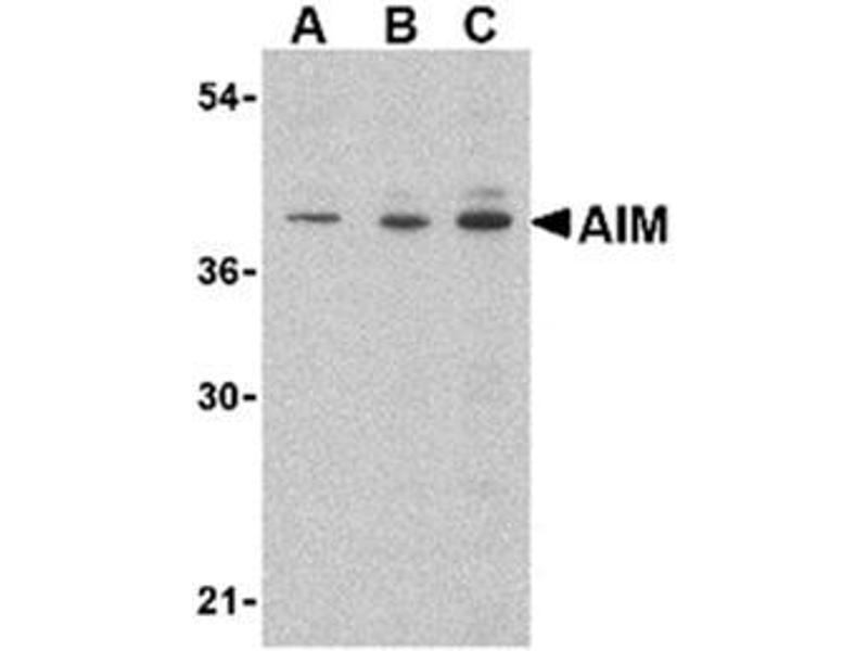 The Rabbit Polyclonal anti-CD5L antibody (ABIN318735) specifically detects CD5L in WB and IHC (p).