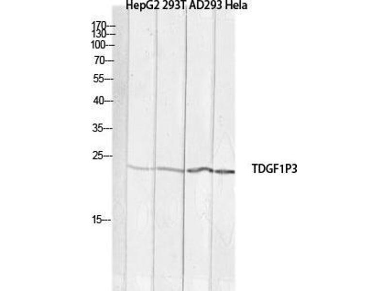 Cripto-3 Polyclonal Antibody detects endogenous levels of Cripto-3 protein.