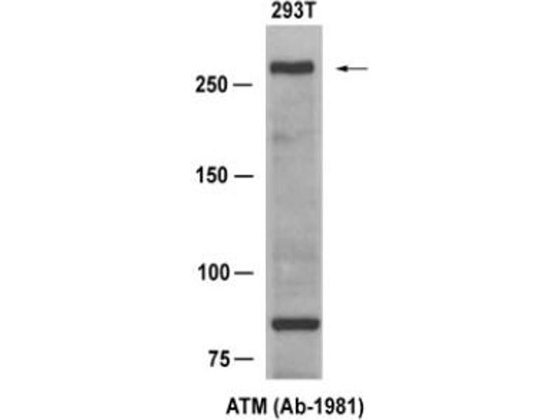 ATM is a 370 kDa nuclear phosphoprotein involved in the autosomal recessive disease Ataxia Telangiectasia (AT). ATM belongs to a novel family of proteins associated with cell cycle regulation, apoptosis, and response to DNA damage repair (DNA damage caused by such things as ionizing irradiation activates ATM kinase). The C terminal region has extensive homology to the catalytic domains of Phosphatidylinositol 3 kinases (PI3 kinases).Synonyms: A-T mutated, ATDC, Ataxia telangiectasia mutated, Serine-protein kinase ATM, TEL1, TELO1