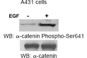 The antiserum was produced against synthesized non-phosphopeptide derived from human Alpha-Catenin around the phosphorylation site of Serine 641 (D-D-Sp-D-F).