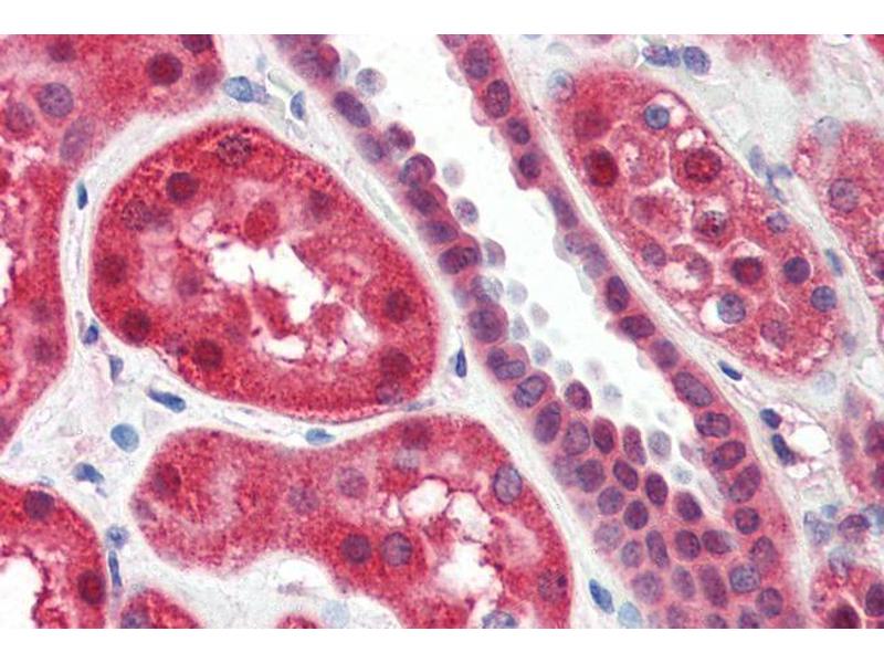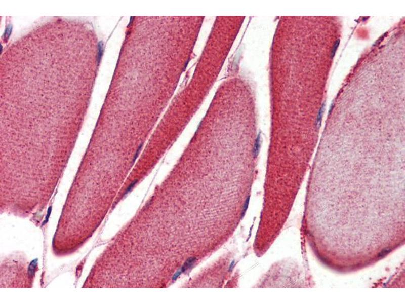 Immunohistochemistry: Paraffin embedded Human Skeletal Muscle and Kidney. Recommended concentration: 2 μg/mL.