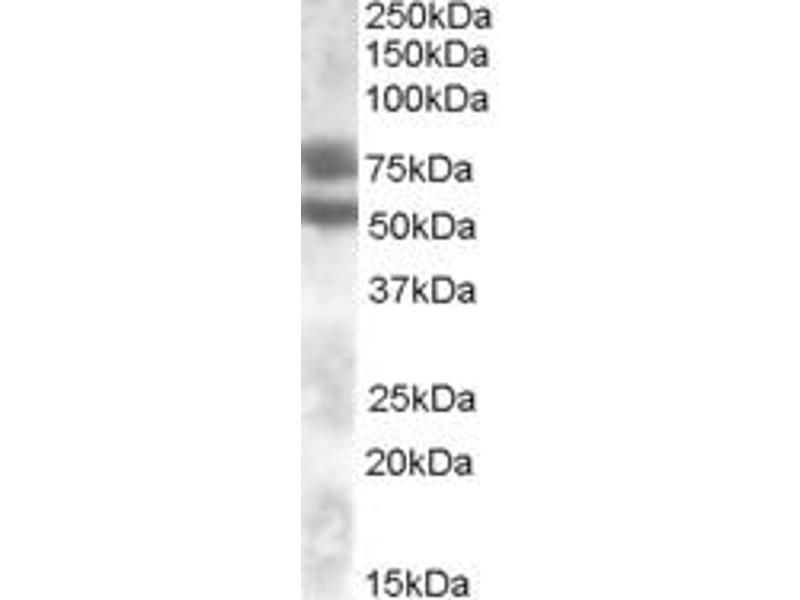 Western Blot: Approx 75 and 52 kDa bands observed in Human Kidney lysates (calculated MW of 73.0 kDa according to NP_542937.1 and of 51.9 kDa according to NP_004383.2). Recommended concentration: 0.1-0.3 μg/mL.