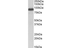 Western Blot: Approx 90 kDa band observed in Human Brain (Frontal Cortex) lysates (calculated MW of 86.4 kDa according to NP_001244067.1) . Recommended concentration: 0.1-0.3 μg/mL. Primary incubation 1 hour at room temperature.