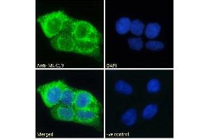 Immunofluorescence: Strong expression of the protein seen in the cytoplasm of HepG2 and Caco-2 cells. Recommended concentration: 10μg/ml.