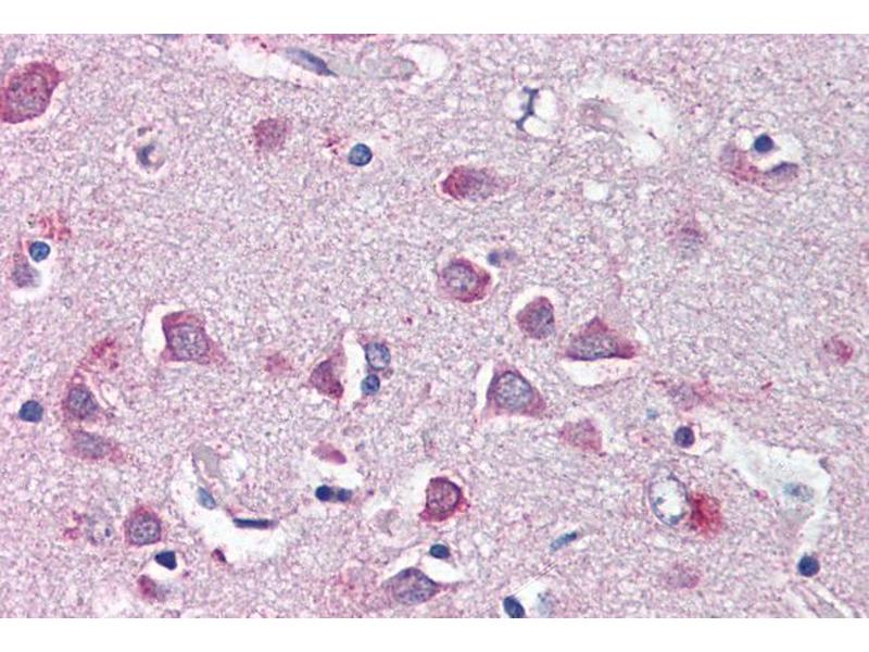 Immunohistochemistry: Paraffin embedded Human Brain (Cortex). Recommended concentration: 5 μg/mL. This product has been successfully used by customers on Formalin/PFA-fixed paraffin-embedded sections of Zebrafish Brain (Cortex).