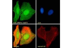 Immunofluorescence: Strong expression of the protein seen in the nuclei and cytoplasm of U2OS cells. Recommended concentration: 10μg/ml.