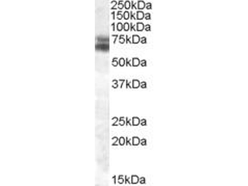 Western Blot: Approx. 70+75 kDa bands observed in Human Brain (Cerebellum) lysates (calculated MW of 68.7 kDa according to NP_001169.3 and 64.1 kDa according to NP_001025444.1). Recommended concentration: 0.3-1 μg/mL.