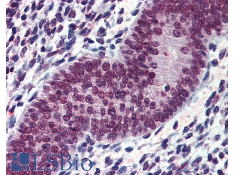 Immunohistochemistry: Paraffin embedded Human Kidney. Recommended concentration: 5-7 μg/mL.