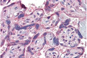 Immunohistochemistry: Paraffin embedded Human Prostate and Placenta. Recommended concentration: 5 μg/mL.