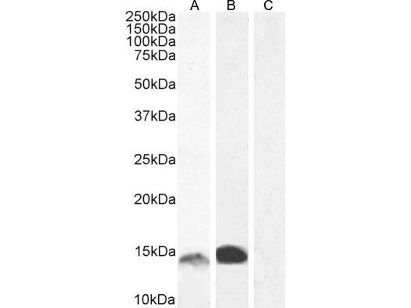 Western Blot: Approx 13-14 kDa band observed in Human Bone Marrow lysates and approx 14-15 kDa in Human Gastrointestinal cancer lysates (calculated MW of 13.2 kDa according to NP_002956.1). Recommended concentration: 0.5-2 μg/mL. Primary incubation 1 hour a