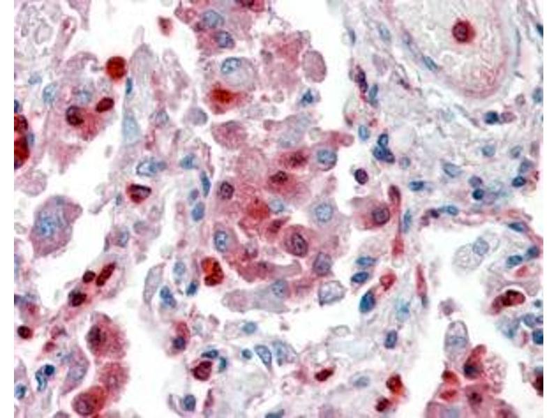 Immunohistochemistry: Paraffin embedded Human Lung. Recommended concentration: 2.5 μg/mL.