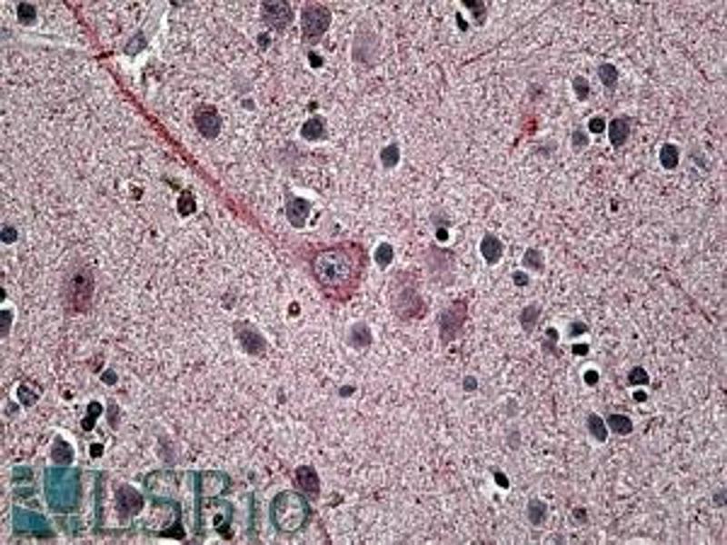 Immunohistochemistry: In paraffin embedded Human Brain shows vesicular staining in neuronal cell and axon. Recommended concentration: 4-6 μg/mL.