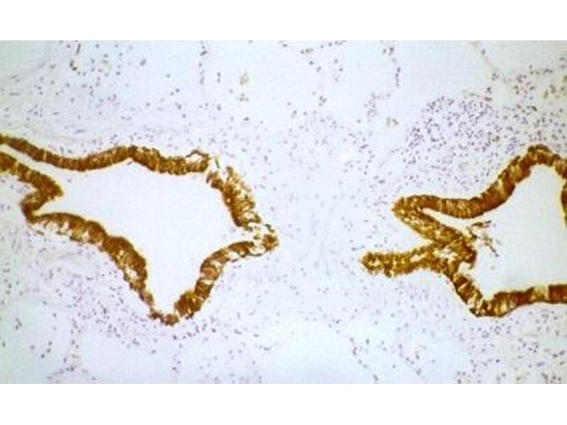 : "Tissue distribution of keratin 7 as monitored by a monoclonal antibody." in: Experimental cell research, Vol. 170, Issue 1, pp. 235-49, (1987) (PubMed).
