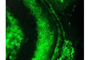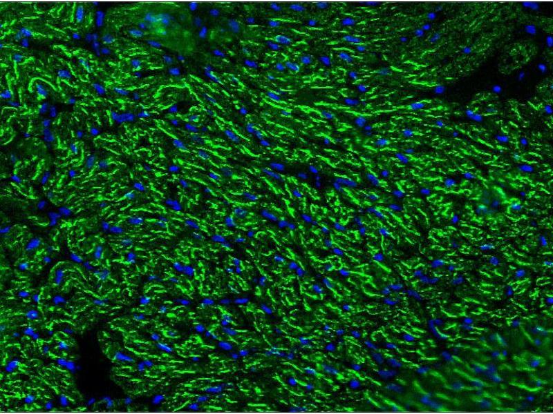 - R2G reacts with cardiotin, a mitochondrion-associated protein, which is present in cardiomyocytes and skeletal muscle. R2G is useful for immunohistochemistry on frozen and paraffin-embedded tissue and immunoblotting. In immunoblotting assays R2G reacts with the 300 kDa cardiotin protein complex and its 100 kDa and 60 kDa subunits. Recommended range is 1:25 - 1:100 for immunohistochemistry with avidin-biotinylated horseradish peroxidase complex (ABC) as detection reagent. Optimal antibody dilution for immunoblotting applications should be determined by titration.