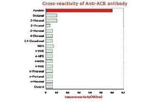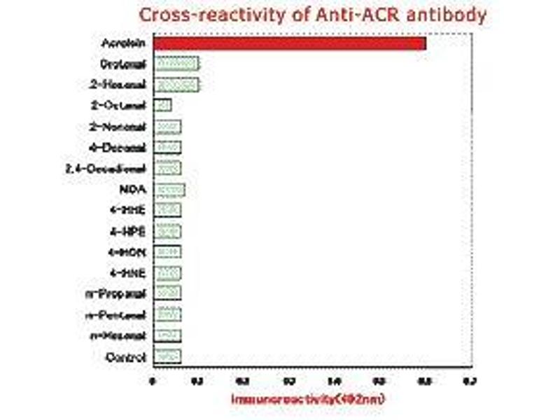 Acrolein (ACR) is a representative carcinogenic aldehyde found ubiquitously in the environment and formed endogenously through oxidation reactions, such as lipid peroxidation and myeloperoxidasecatalyzed amino acid oxidation. This antibody is specific for the ACR-modified protein, especially FDP-lysine type derivative.