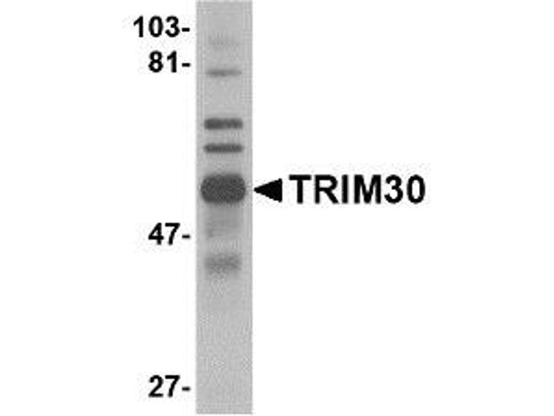 Usage: TRIM30 antibody can be used for detection of TRIM30 by Western blot at 0.5-1 μg/mL -