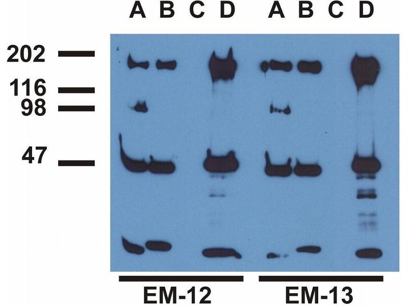 Western blotting: Recommended dilution: 1 μg/mL, positive control: EGF-stimulated A431, negative control: non-stimulated A431.
