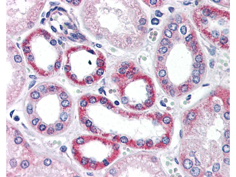 Usage: Immunohistochemistry: This antibody was validated for use in immunohistochemistry on a panel of 21 formalin-fixed, paraffin-embedded (FFPE) human tissues after heat induced antigen retrieval in pH 6.0 citrate buffer. After incubation with the primary antibody, slides were incubated with biotinylated secondary antibody, followed by alkaline phosphatase-streptavidin and chromogen. The stained slides were evaluated by a pathologist to confirm staining specificity. The optimal working concentration for this antibody was determined to be 5 μg/mL. -