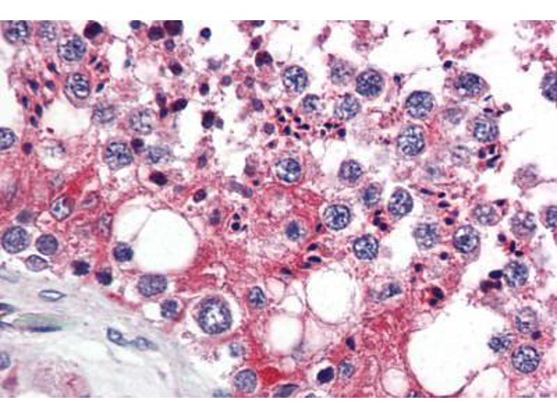 Usage: Immunohistochemistry: This antibody was validated for use in immunohistochemistry on a panel of 21 formalin-fixed, paraffin-embedded (FFPE) human tissues after heat induced antigen retrieval in pH 6.0 citrate buffer. After incubation with the primary antibody, slides were incubated with biotinylated secondary antibody, followed by alkaline phosphatase-streptavidin and chromogen. The stained slides were evaluated by a pathologist to confirm staining specificity. The optimal working concentration for this antibody was determined to be 5 μg/mL. -