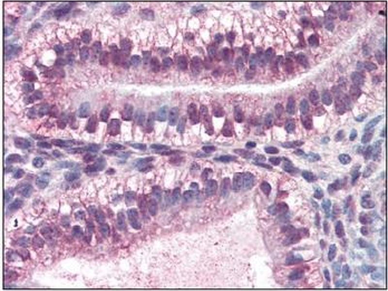 ELISA. Western blot (1/250-1/1,000). Immunohistochemistry on Paraffin Sections (10 μg/mL). This CRABP2 antibody was validated for use in immunohistochemistry on a panel of 21formalin-fixed, paraffin-embedded (FFPE) human tissues after heat induced antigenretrieval in pH 6.0 citrate buffer. After incubation with the primary antibody, slides wereincubated with biotinylated secondary antibody, followed by alkalinephosphatase-streptavidin and chromogen. Other applications not tested. Optimal dilutions are dependent on conditions and should be determined by the user.