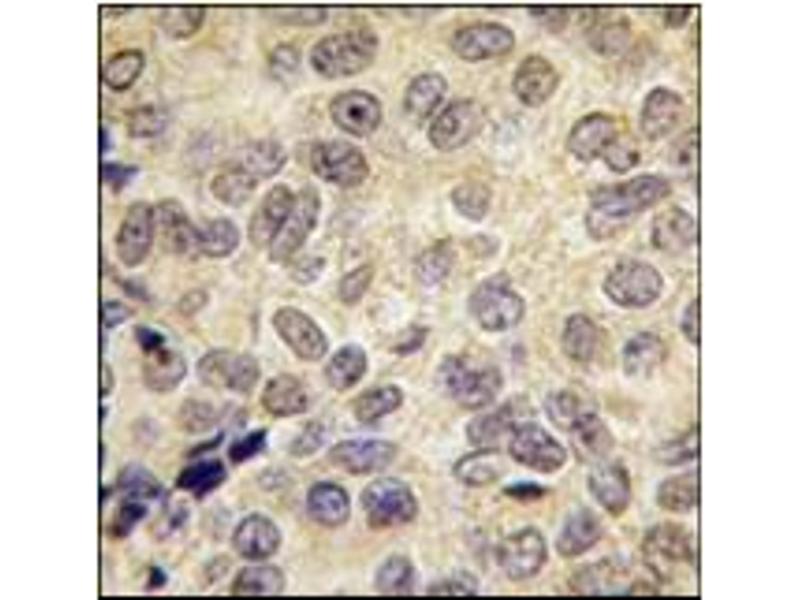 CpG methylation is an epigenetic modification that is important for embryonic development, imprinting, and X-chromosome inactivation. Studies in mice have demonstrated that DNA methylation is required for mammalian development. Dnmt3b is a DNA methyltransferase which is thought to function in de novo methylation, rather than maintenance methylation. The protein localizes primarily to the nucleus and its expression is developmentally regulated. Mutations in this gene cause the immunodeficiency-centromeric instability-facial anomalies (ICF)syndrome.Synonyms: DNA (cytosine-5)-methyltransferase 3B, DNA MTase HsaIIIB, DNA methyltransferase HsaIIIB, M.HsaIIIB