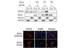 Histones play a critical role in transcriptional regulation, cell cycle progression, and developmental events. Histone acetylation/deacetylation alters chromosome structure and affects transcription factor access to DNA. The protein encoded by this gene has sequence homology to members of the histone deacetylase family. This gene is orthologous to the Xenopus and mouse MITR genes. The MITR protein lacks the histone deacetylase catalytic domain. It represses MEF2 activity through recruitment of multicomponent corepressor complexes that include CtBP and HDACs. This encoded protein may play a role in hematopoiesis. Multiple alternatively spliced transcripts have been described for this gene but the full-length nature of some of them has not been determined.Synonyms: HD7B, HD9, HDAC7B, HDRP, Histone deacetylase 9, Histone deacetylase-related protein, KIAA0744, MEF2-interacting transcription repressor MITR, MITR