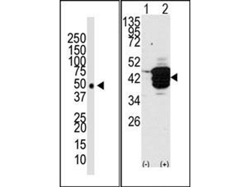 ELISA: 1/1,000. Western blot: 1/100-1/500. Immunohistochemistry: 1/50-1/100. Other applications not tested. Optimal dilutions are dependent on conditions and should be determined by the user.