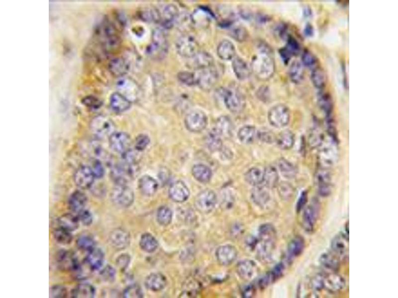 ELISA 1: 1,000. Western blot 1: 50 - 1: 100. Immunohistochemistry 1: 10 - 1: 50. Other applications not tested. Optimal dilutions are dependent on conditions and should be determined by the user.