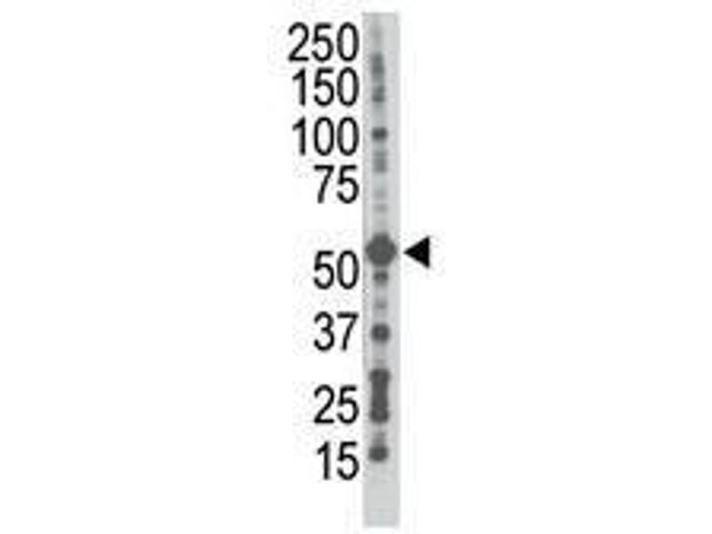 ELISA 1: 1,000. Western blotting 1: 100 - 1: 500. Immunohistochemistry 1: 50 - 1: 100. Other applications not tested. Optimal dilutions are dependent on conditions and should be determined by the user.