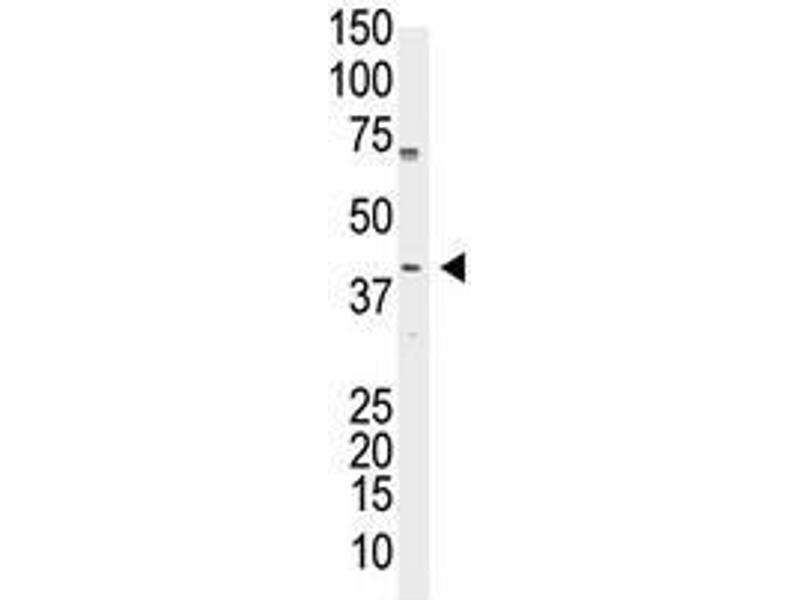 ELISA 1: 1,000. Western blot 1: 100 - 1: 500. Immunofluorescence 1: 50 - 1: 100. Other applications not tested. Optimal dilutions are dependent on conditions and should be determined by the user.