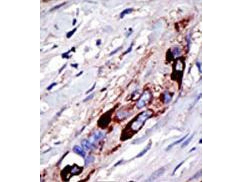 ELISA: 1/1,000. Western Blot: 1/100-1/500. Immunohistochemistry: 1/50-1/100. Other applications not tested. Optimal dilutions are dependent on conditions and should be determined by the user.