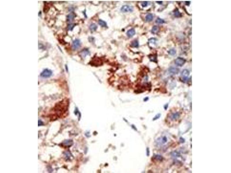 ELISA: 1/1,000. Western Blot: 1/100-1/500. Immunohistochemistry: 1/50-1/100. Other applications not tested. Optimal dilutions are dependent on conditions and should be determined by the user.