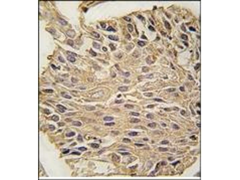 ELISA: 1/1,000. Western Blot: 1/50-1/100. Immunohistchemistry: 1/10-1/50. Other applications not tested. Optimal dilutions are dependent on conditions and should be determined by the user.