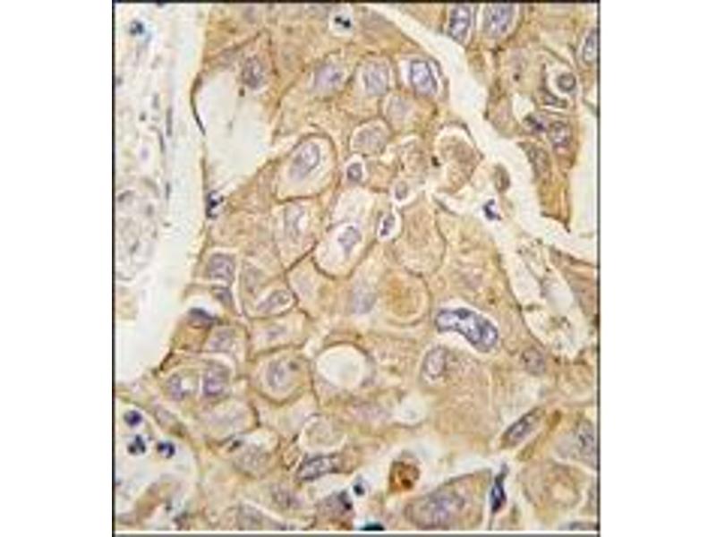 ADCY2 is a member of the family of adenylate cyclases, which are membrane-associated enzymes that catalyze the formation of the secondary messenger cyclic adenosine monophosphate(cAMP). This enzyme is insensitive to Ca(2+)/calmodulin, and is stimulated by the G protein beta and gamma subunit complex.Synonyms: ADCY2, ATP pyrophosphate-lyase 2, Adenylate cyclase type II, Adenylyl cyclase 2, KIAA1060