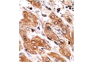 ELISA: 1/1,000. Western Blot: 1/100-1/500. Immunohistochemistry: 1/50-1/100. Other applications not tested. Optimal dilutions are dependent on conditions and should be determined by the user.