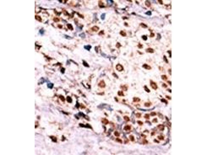 ELISA: 1/1,000. Western Blot: 1/100-1/500. Immunohistochemistry: 1/50approx. 1/100. Other applications not tested. Optimal dilutions are dependent on conditions and should be determined by the user.