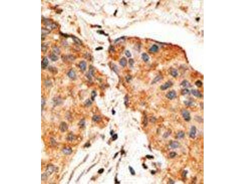 ELISA: 1/1,000. Western Blot: 1/50 - 1/100. Immunohistochemistry: 1/50 - 1/100.