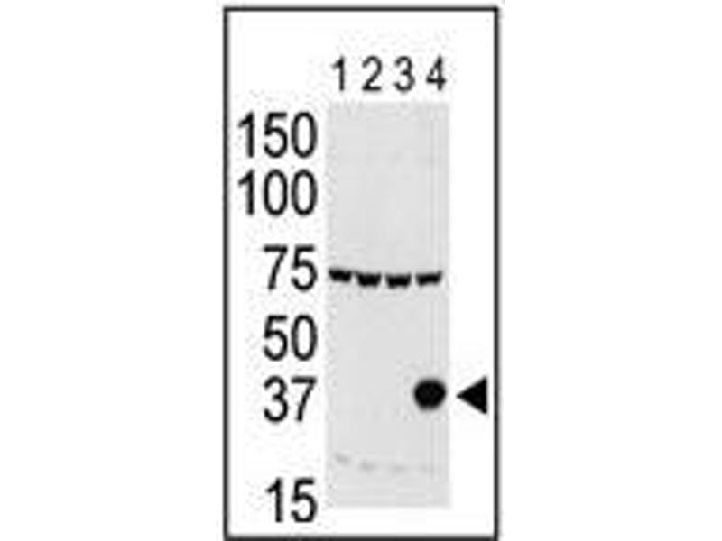 ELISA: 1/1,000. Western blotting: 1/100-1/500. Immunofluorescence: 1/100-1/500. Not Suitable for Immunoprecipitation. Other applications not tested. Optimal dilutions are dependent on conditions and should be determined by the user.