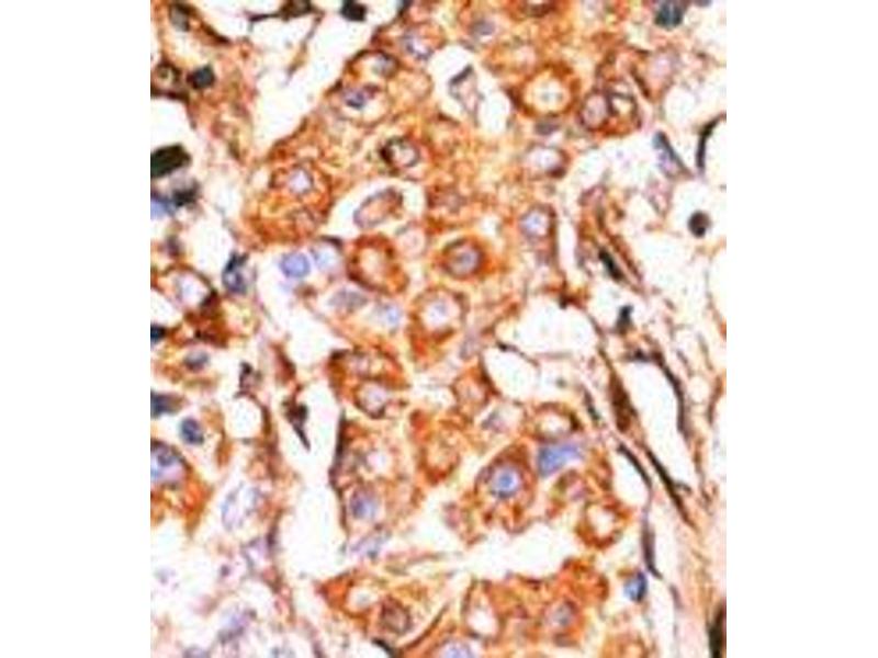 ELISA: 1/1,000. Western blotting: 1/100 - 1/500. Immunohistochemistry: 1/50 - 1/100. Other applications not tested. Optimal dilutions are dependent on conditions and should be determined by the user.