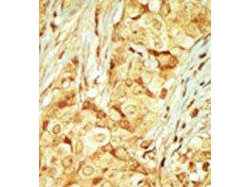 ELISA: 1/1,000. Western blotting: 1/100 - 1/500. Immunohistochemistry: 1/50 - 1/100. Other applications not tested. Optimal dilutions are dependent on conditions and should be determined by the user.