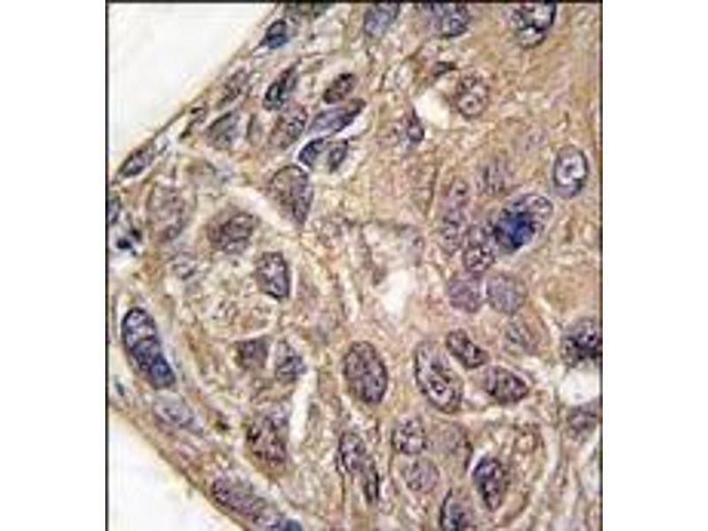 ELISA: 1/1,000. Western blotting: 1/50 - 1/100. Immunohistochemistry: 1/10 - 1/50. Other applications not tested. Optimal dilutions are dependent on conditions and should be determined by the user.