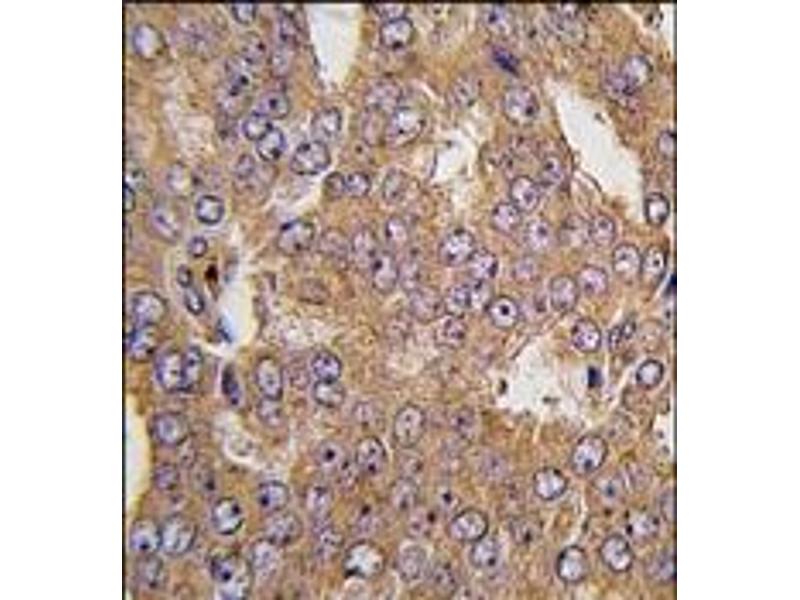 ELISA: 1/1,000. Western blotting: 1/50 - 1/100. Immunohistochemistry: 1/10 - 1/50. Other applications not tested. Optimal dilutions are dependent on conditions and should be determined by the user.