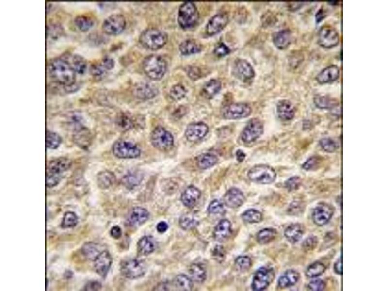 ELISA: 1/1,000. Western blotting: 1/50 - 1/100. Immunohistochemistry: 1/50 - 1/100. Other applications not tested. Optimal dilutions are dependent on conditions and should be determined by the user.