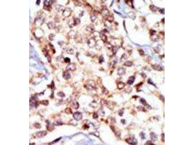 ELISA: 1/1,000. Western blotting: 1/100 - 1/500. Immunohistochemistry: 1/50 - 1/100. Other applications not tested. Optimal dilutions are dependent on conditions and should be determined by the user.