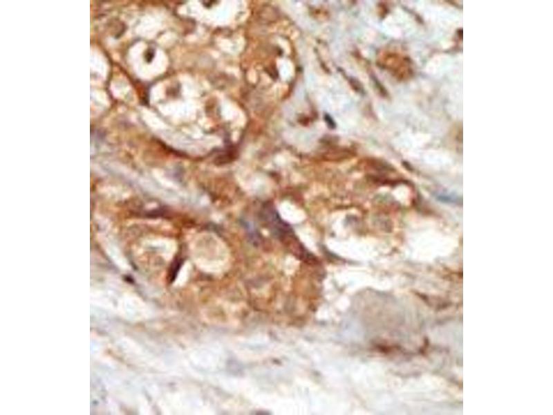ELISA: 1/1,000. Western blotting: 1/100 - 1/500. Immunohistochemistry: 1/50 - 1/100. Other applications not tested. Optimal dilutions are dependent on conditions and should be determined by the user.