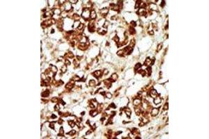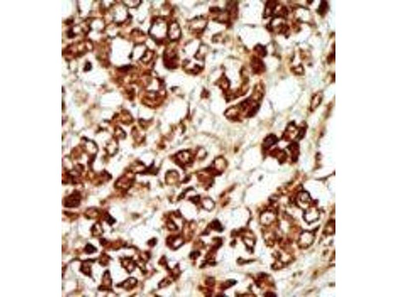 ELISA: 1/1,000. Western blotting: 1/100 - 1/500. Immunohistochemistry: 1/50 - 1/100. Other applications not tested. Optimal dilutions are dependent on conditions and should be determined by the user.
